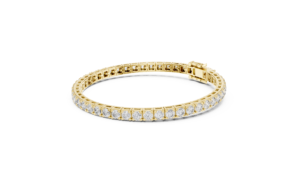 A bold and refined diamond tennis bracelet featuring 37 round-cut diamonds in a secure collet setting. With its 4mm stone size and continuous layout, this piece delivers strong brilliance and a structured, premium look ideal for statement wear.