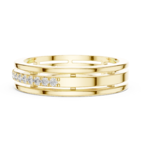 A refined diamond band featuring a row of round diamonds securely set in a smooth channel setting. The clean linear alignment and polished finish create a bold yet minimal look, perfect for everyday elegance or stacking.