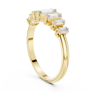 A sleek multi-stone diamond ring featuring a structured arrangement of baguette-cut diamonds set in a clean bar-style layout. The geometric design offers a modern and elegant look, making it a standout everyday statement piece.