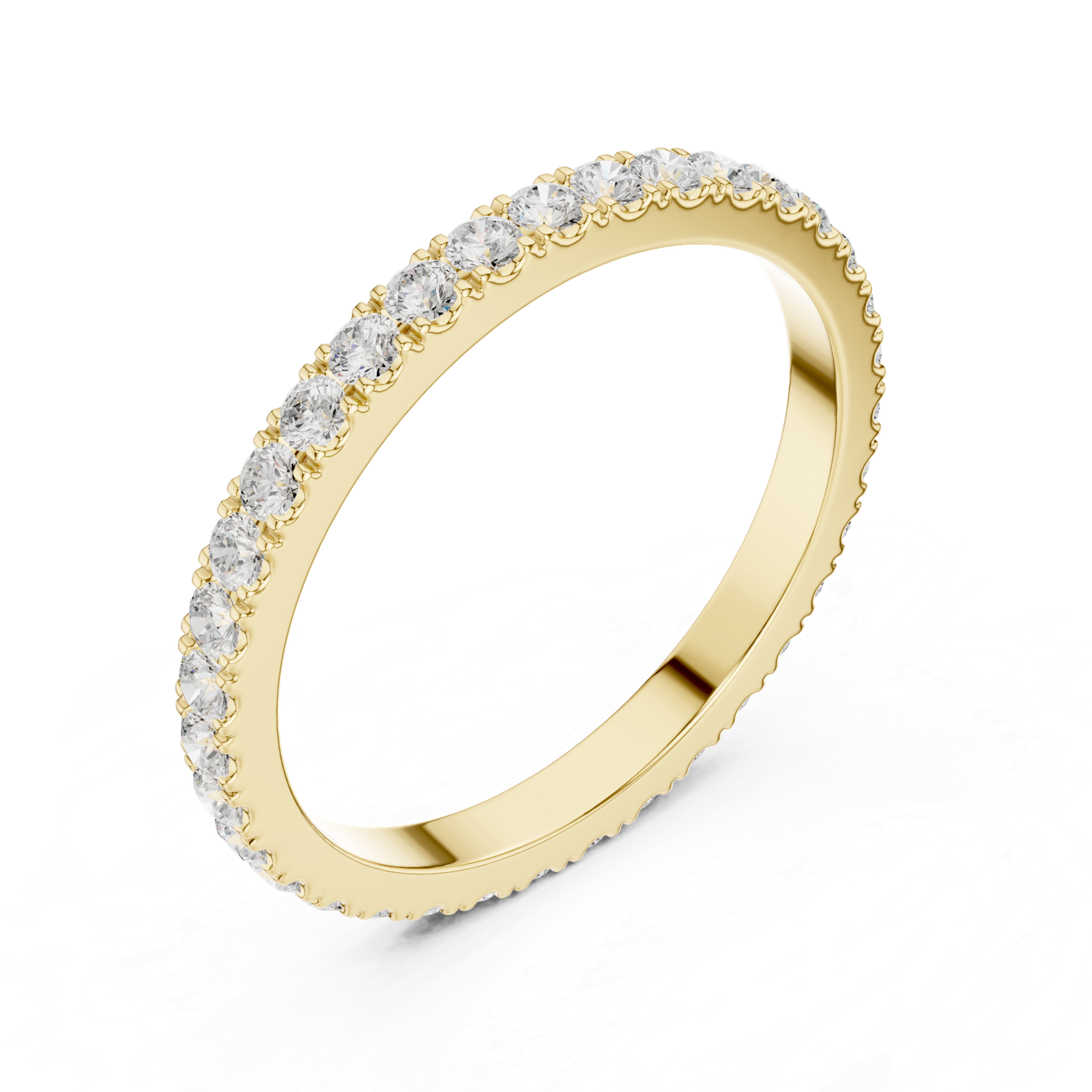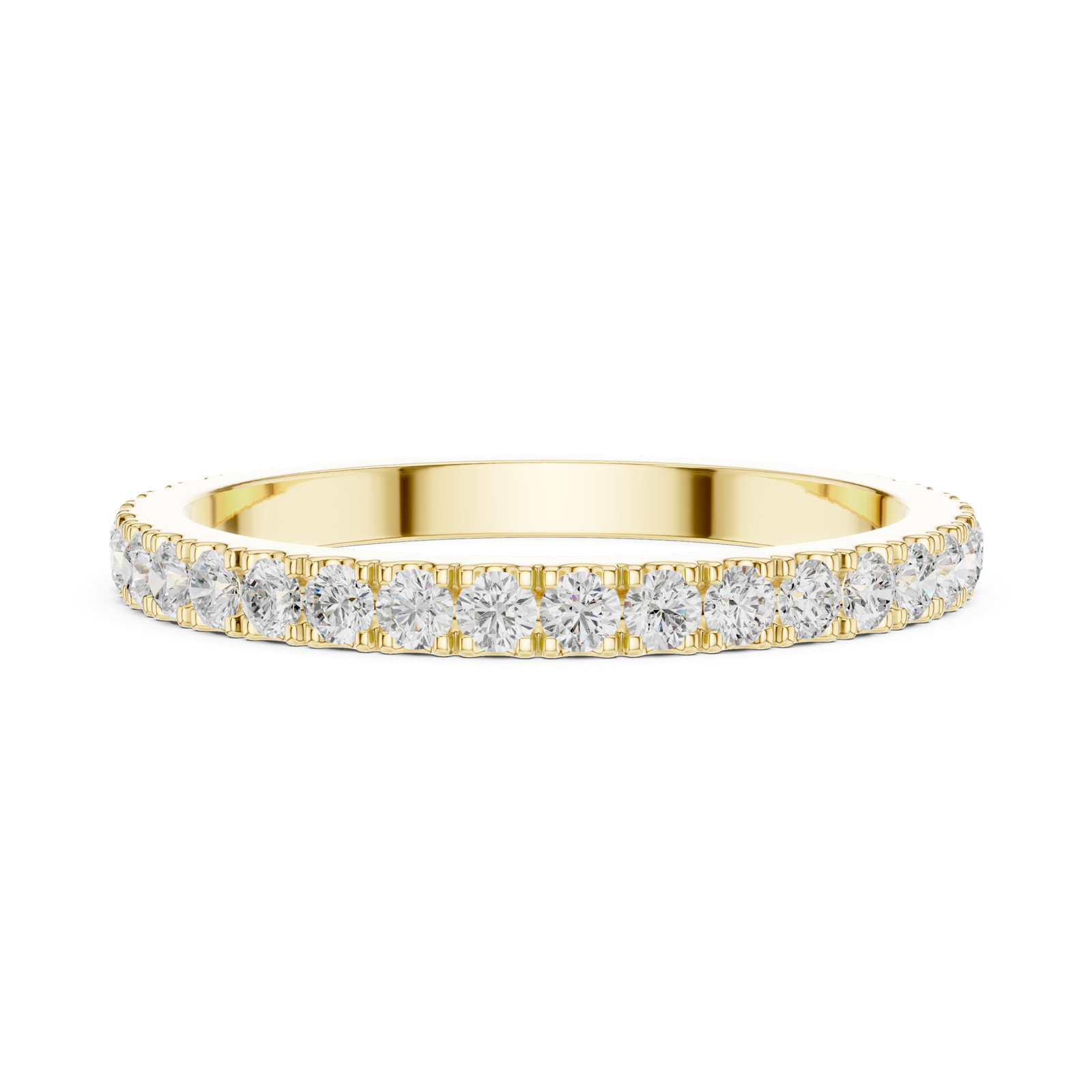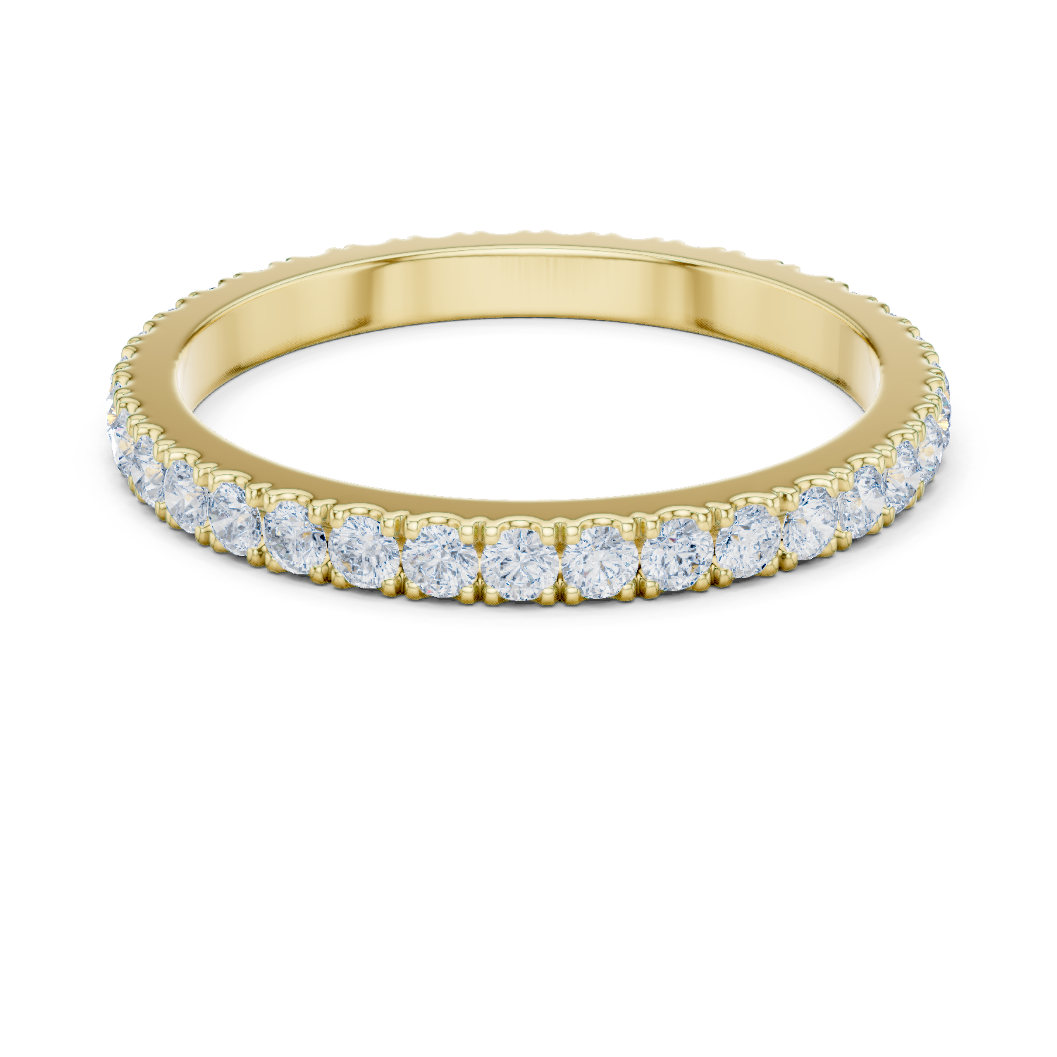 A sleek and timeless eternity band featuring a continuous row of brilliant round-cut diamonds. Designed for elegance and everyday wear, this ring offers a refined look with perfectly aligned stones that deliver consistent sparkle from every angle.