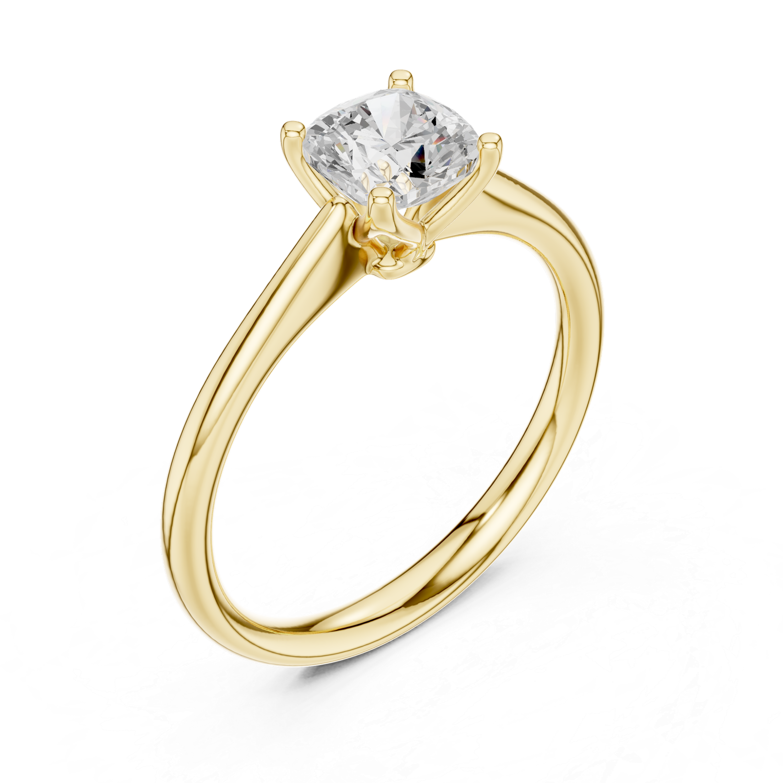 A refined solitaire ring featuring a soft cushion-cut peach-toned center stone secured in a classic prong setting. The slender band and elevated basket enhance the stone’s brilliance while maintaining a minimal and elegant profile
