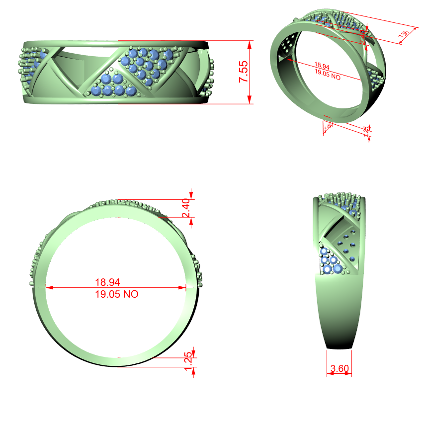 Diagonal Cross-Over Diamond Band with Pavé Detailing