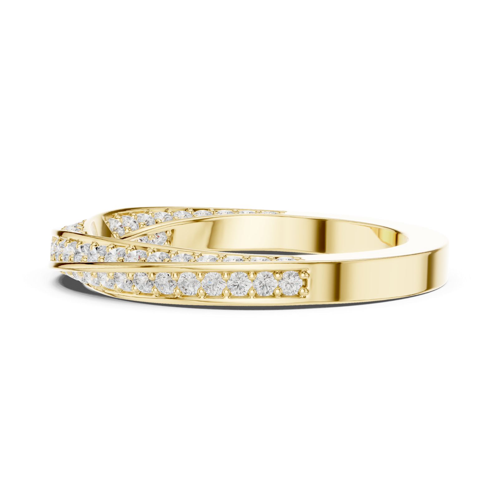 A sleek double-row diamond band ring featuring finely set round diamonds in a continuous prong setting. The slim profile and uniform stone alignment create a refined and modern look, perfect for stacking or everyday elegance.