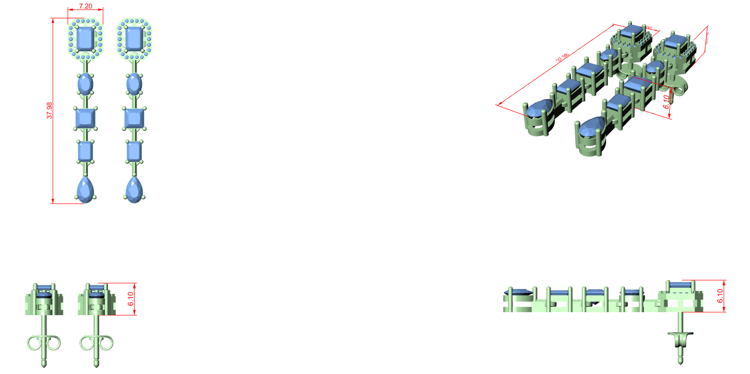 Elegant drop earrings featuring emerald-cut center stones framed with a delicate halo, followed by a cascading arrangement of diamonds ending in pear-shaped drops. Designed to create graceful movement and brilliance, perfect for statement occasions.