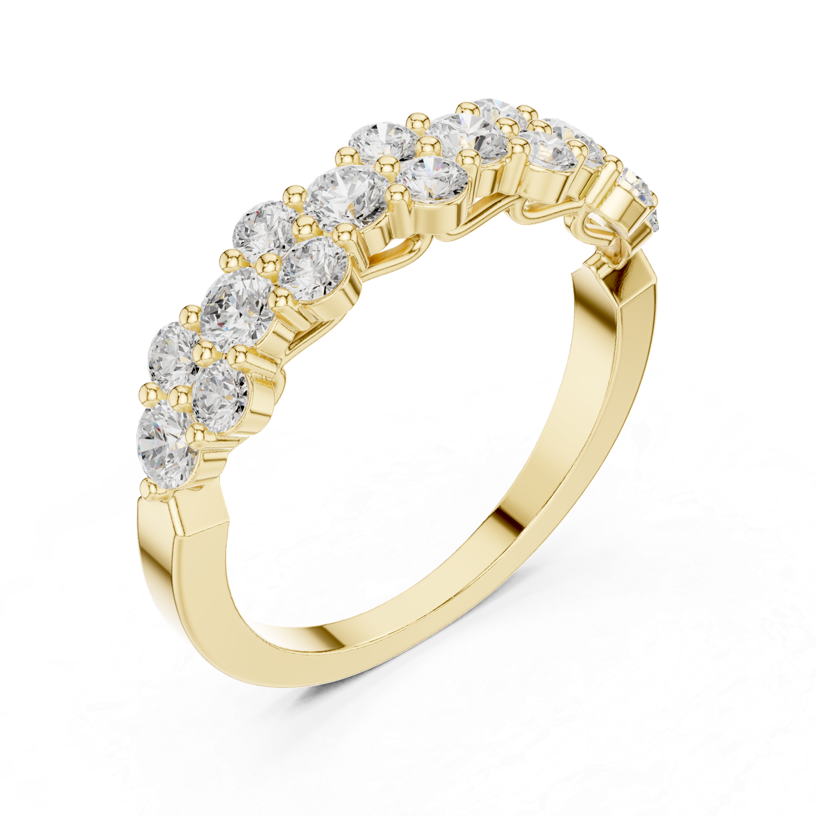 A beautifully balanced diamond band featuring graduated round diamonds arranged in a clustered pattern across the top. The design creates a flowing sparkle effect, combining volume and brilliance in a sleek and elegant form.