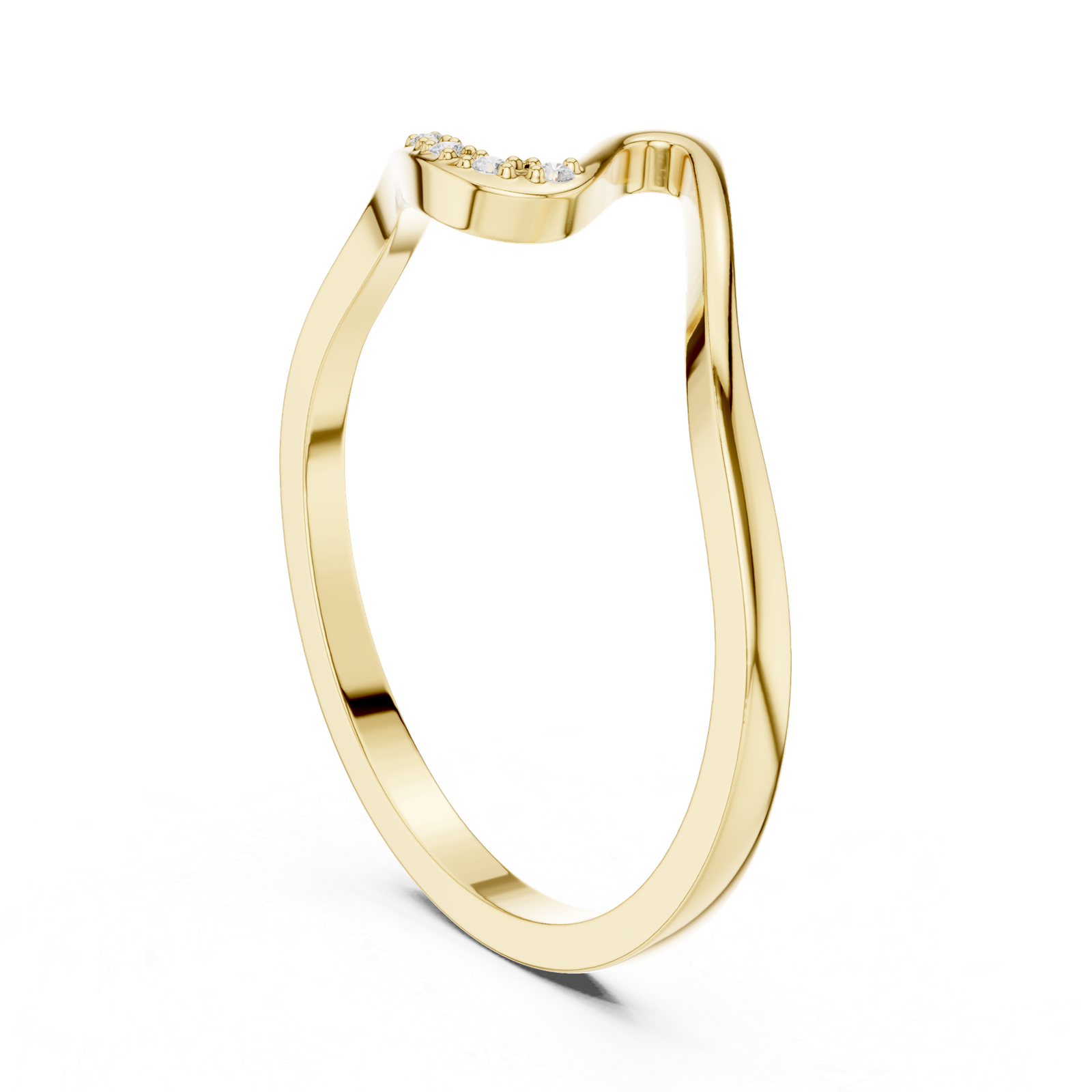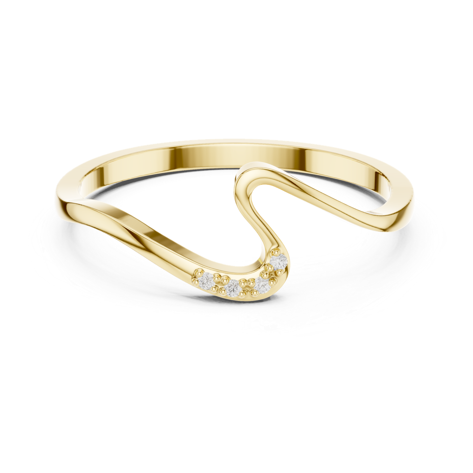 A sleek and modern wave-inspired ring featuring a gently curved band accented with subtle round diamonds. The minimalist structure and fluid design make it perfect for everyday wear with a touch of sparkle.