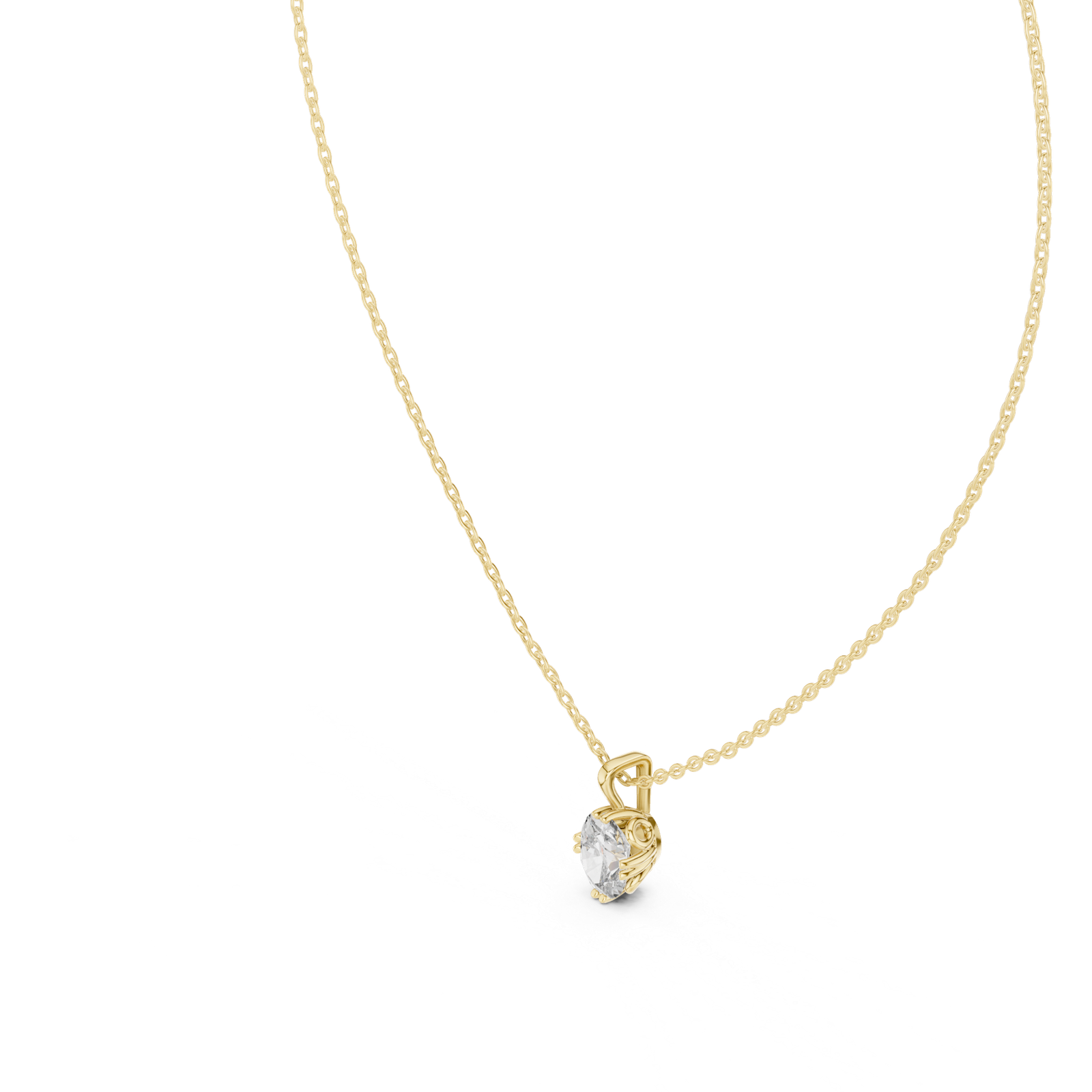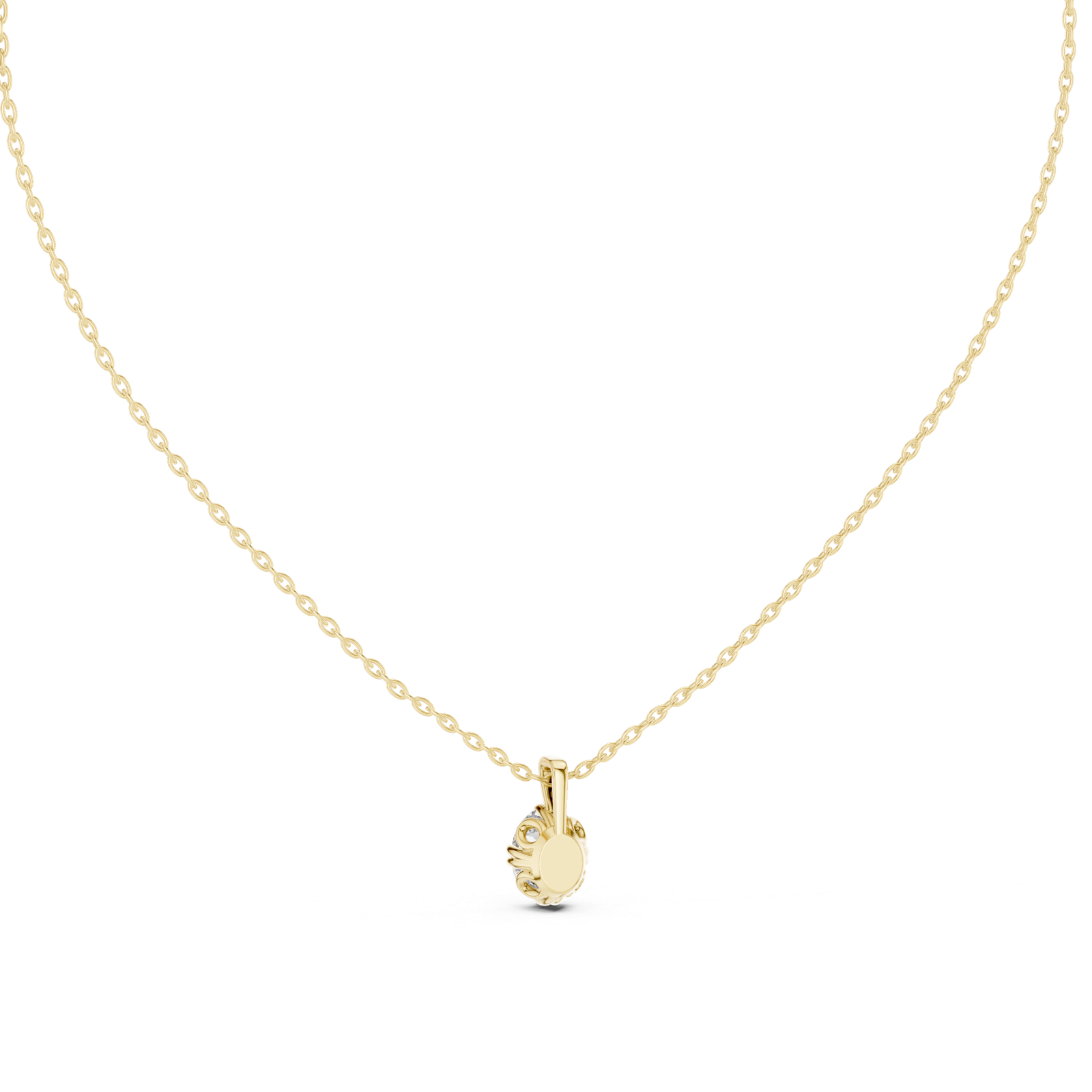 A refined oval-cut solitaire diamond pendant set in a secure collet setting, suspended from a classic bail design. Minimal and elegant, this pendant highlights the brilliance of a single diamond, making it perfect for everyday wear or gifting.
