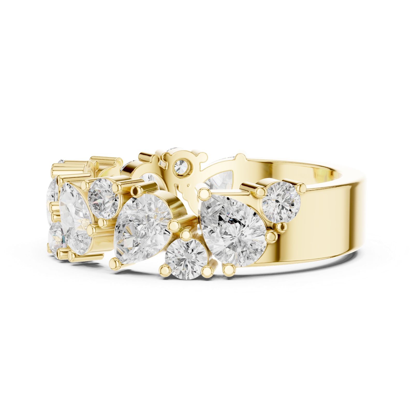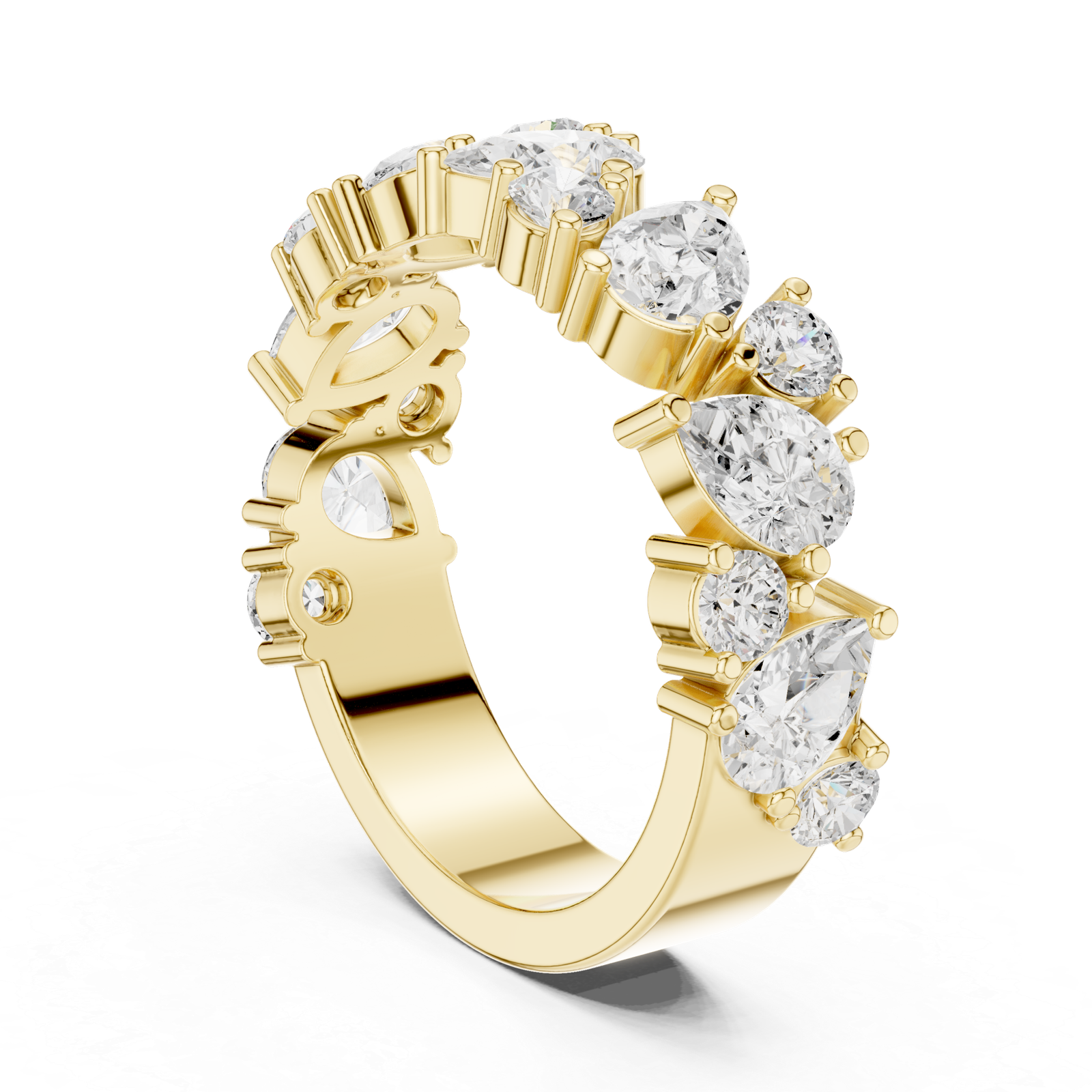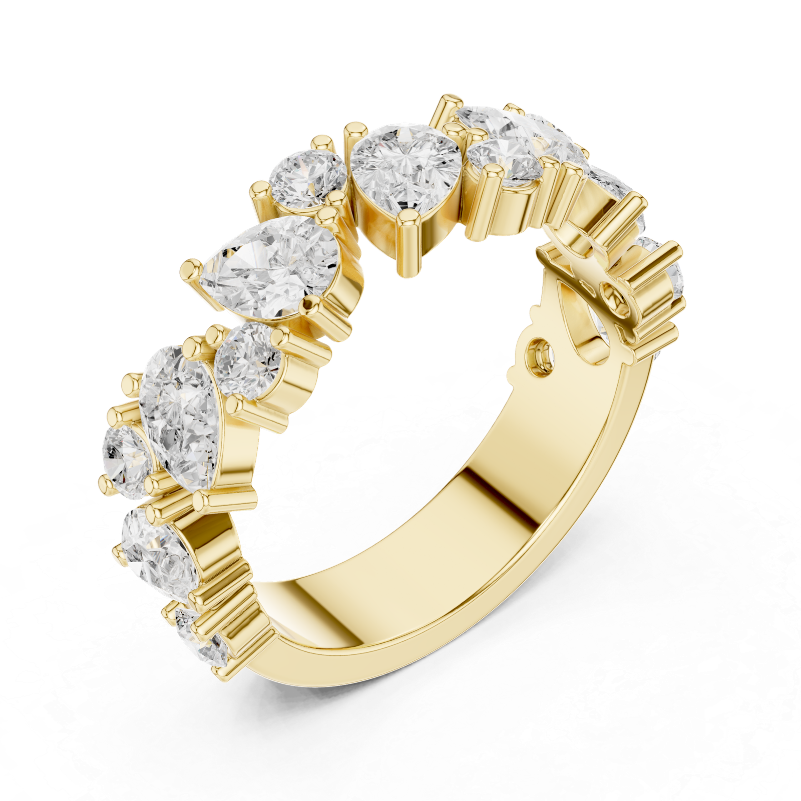 A modern half-eternity diamond ring featuring a stunning combination of pear-shaped and round diamonds set along the band. Designed with a balanced layout and sleek profile, this ring delivers a refined yet eye-catching look perfect for everyday elegance.