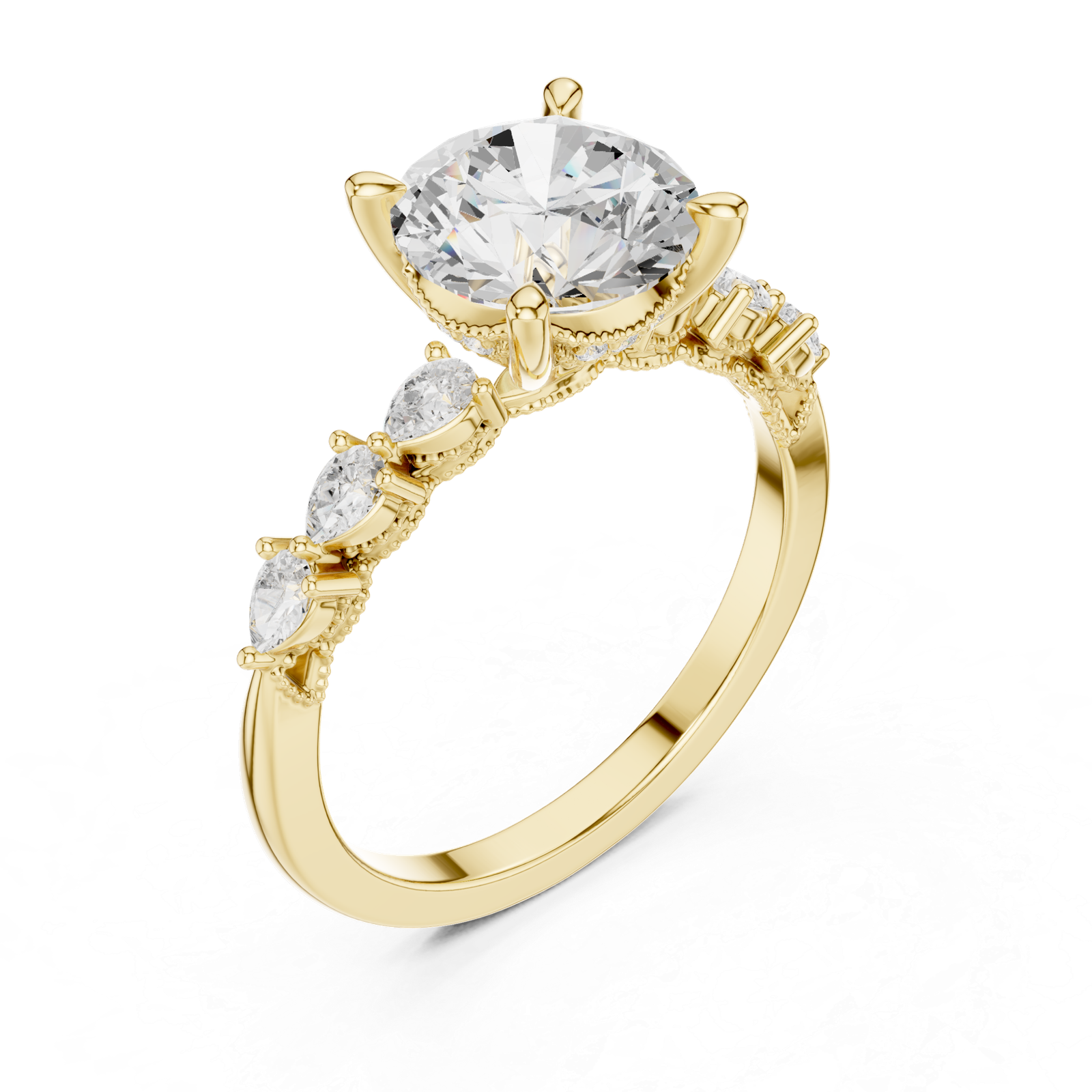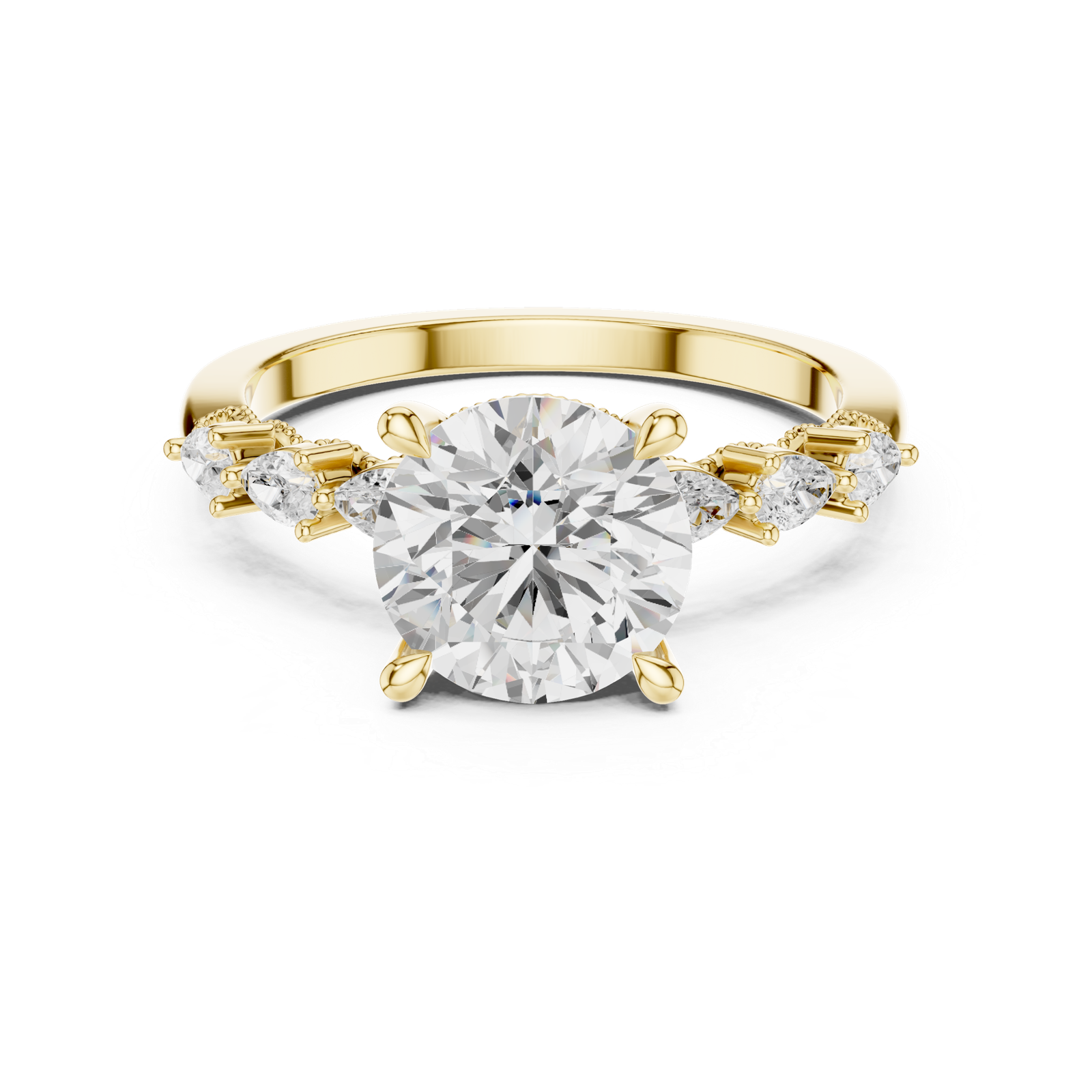 Round Center Diamond Ring with Pear Side Accents