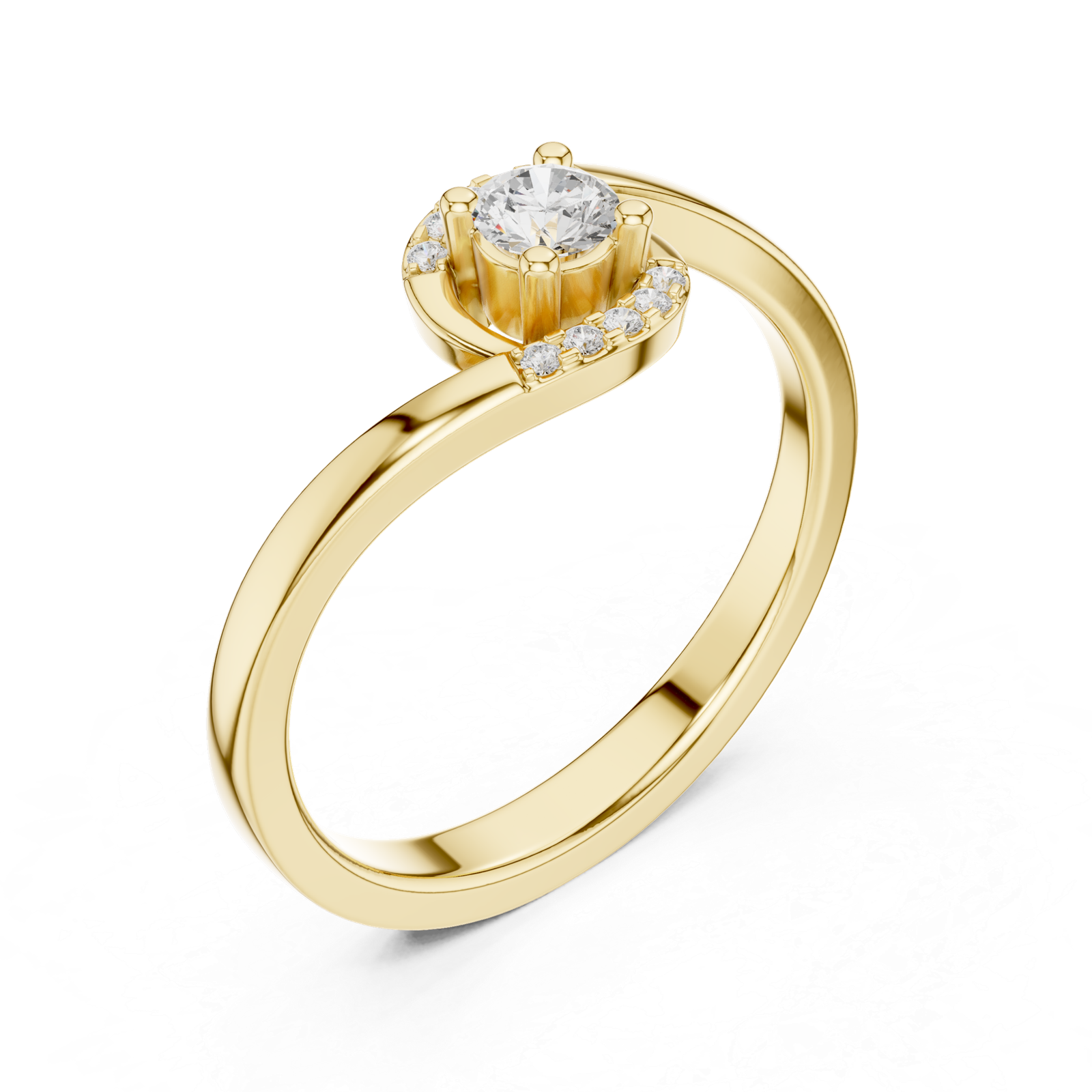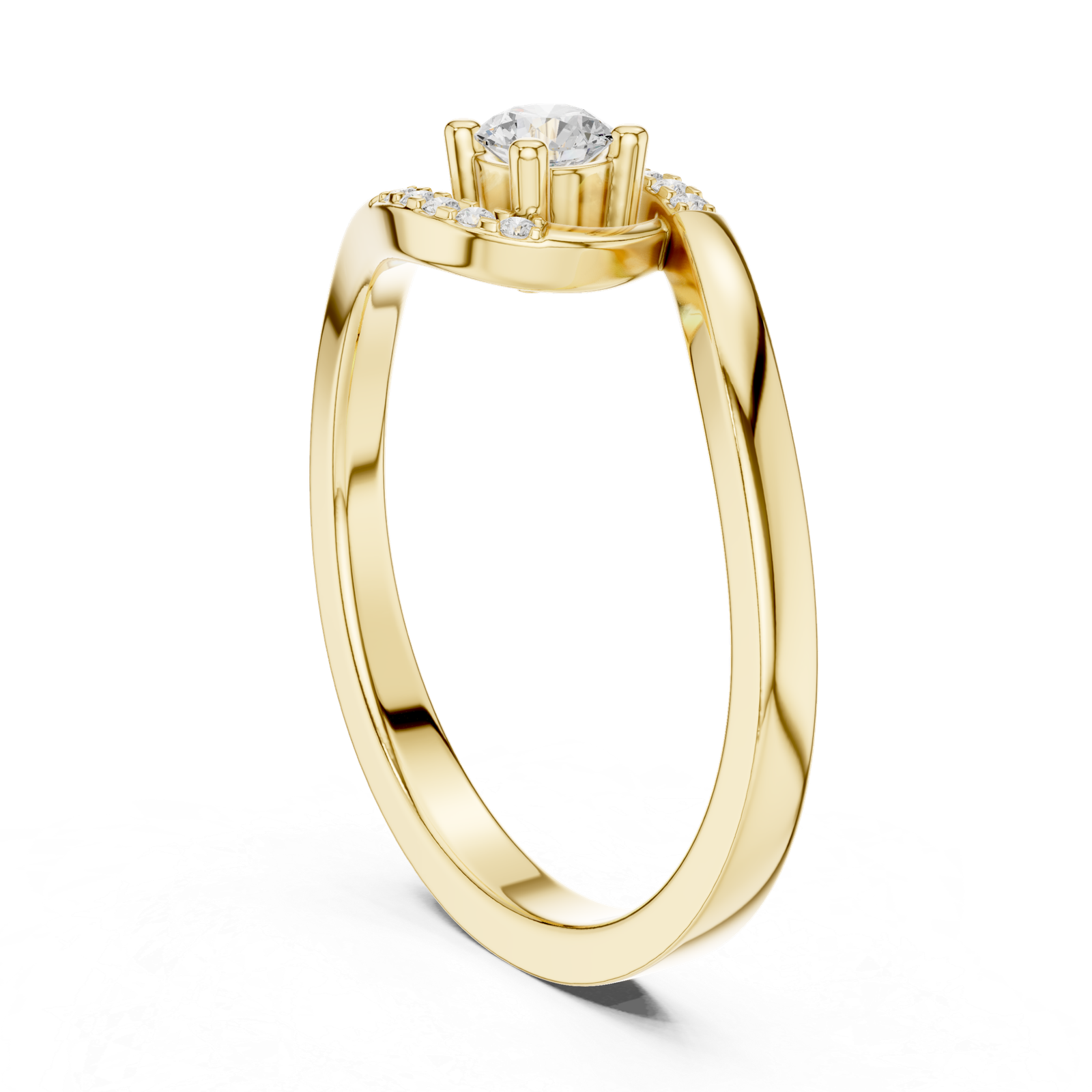 A graceful diamond halo ring featuring a brilliant round center stone encircled by delicate accent diamonds. The softly twisted band adds a modern touch, enhancing the overall brilliance and elegance of the design.