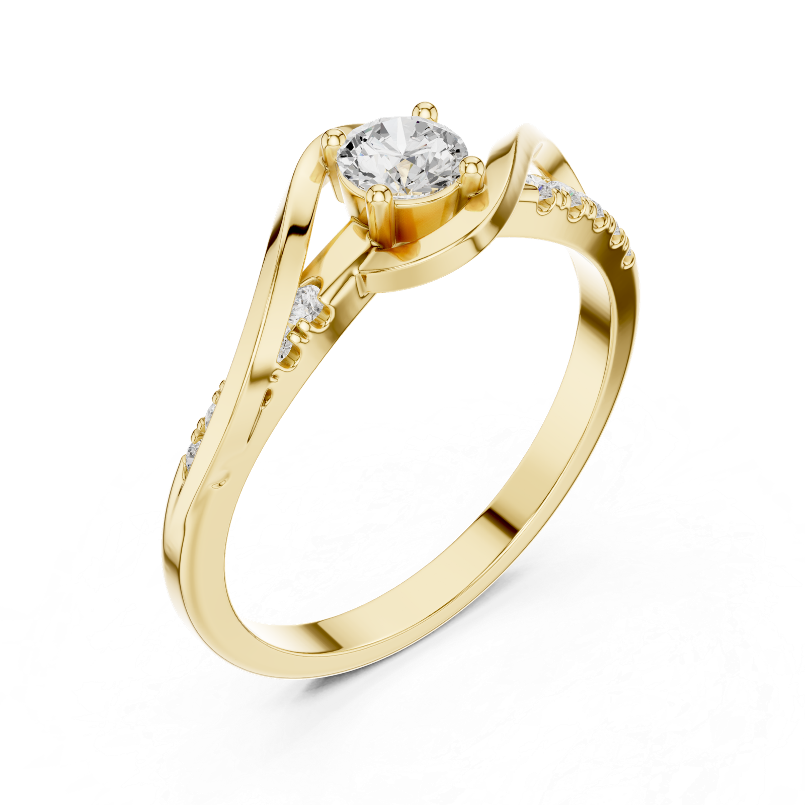 An elegant infinity-inspired diamond ring featuring a brilliant round center stone embraced by a flowing twisted band. Accented with pavé-set diamonds along the shoulders, this design symbolizes timeless beauty and continuous elegance.