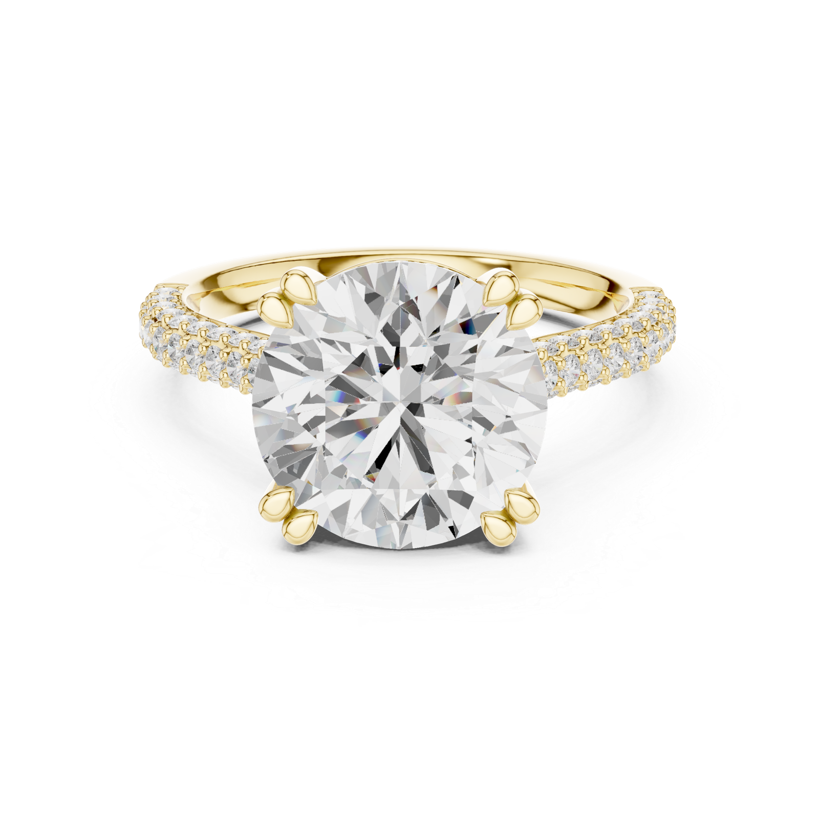 Round Diamond Ring with Pavé Band and Elevated Setting