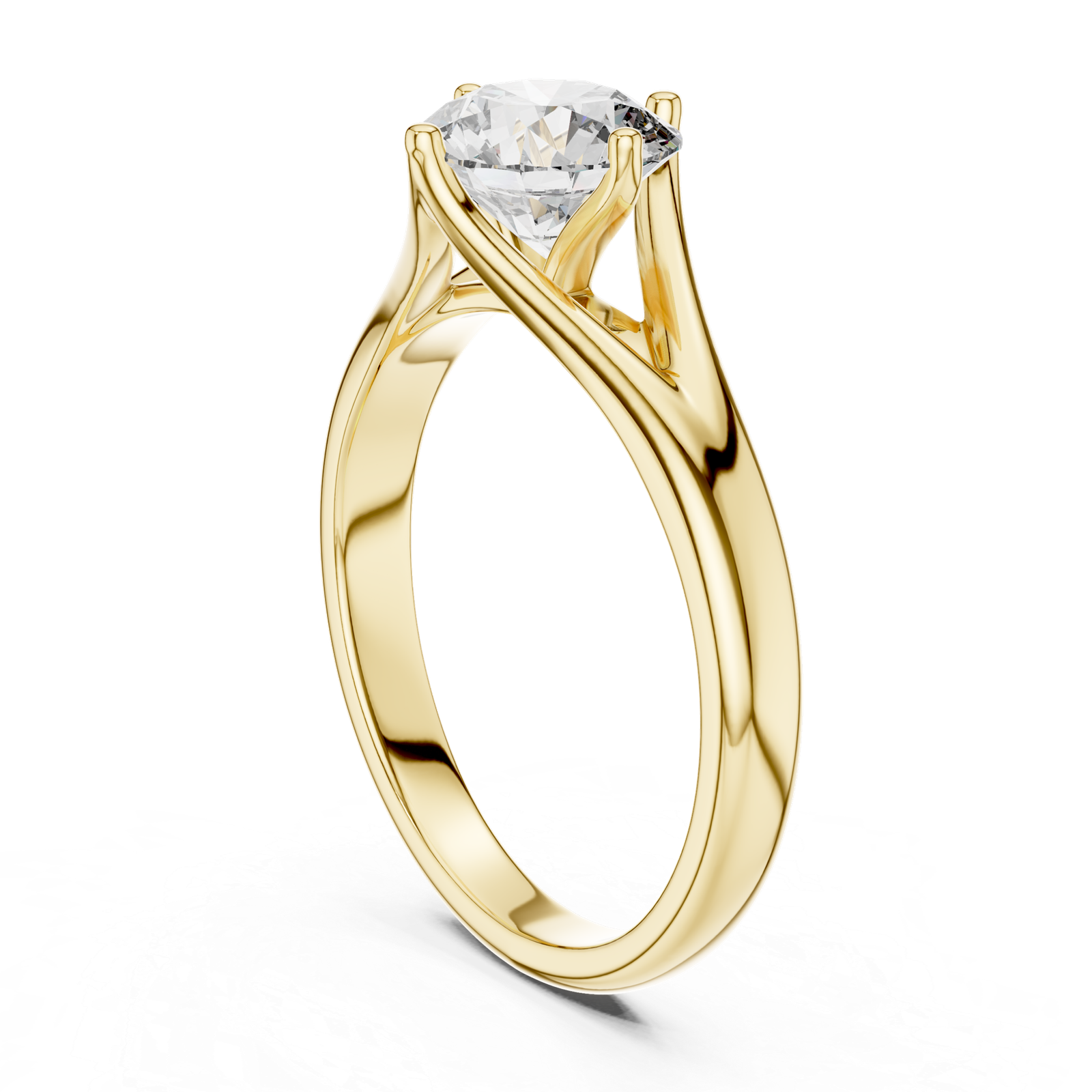 A refined solitaire diamond ring featuring a brilliant round-cut center diamond set in a classic prong setting. The graceful tapered band enhances the brilliance of the diamond, creating a timeless design suited for everyday elegance.