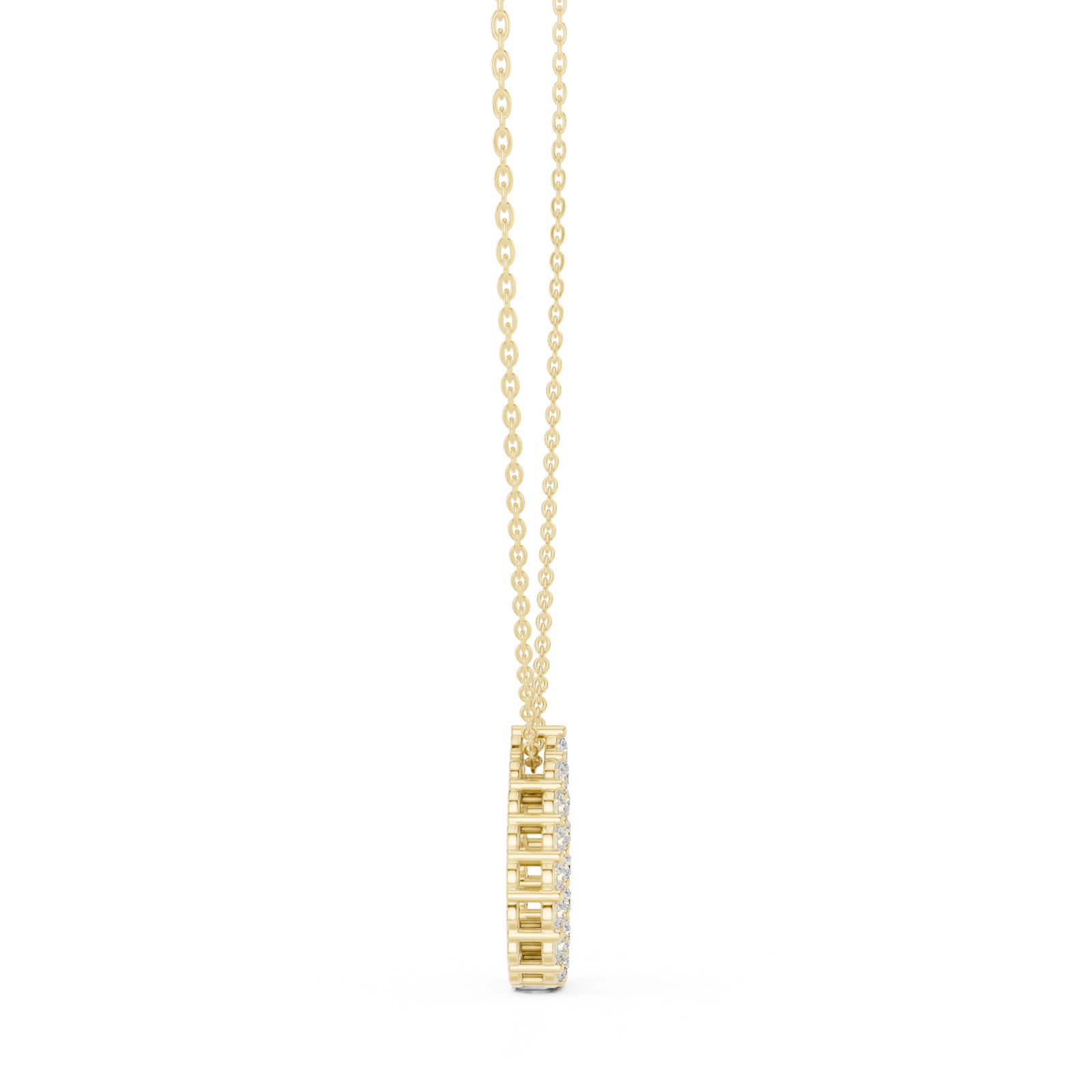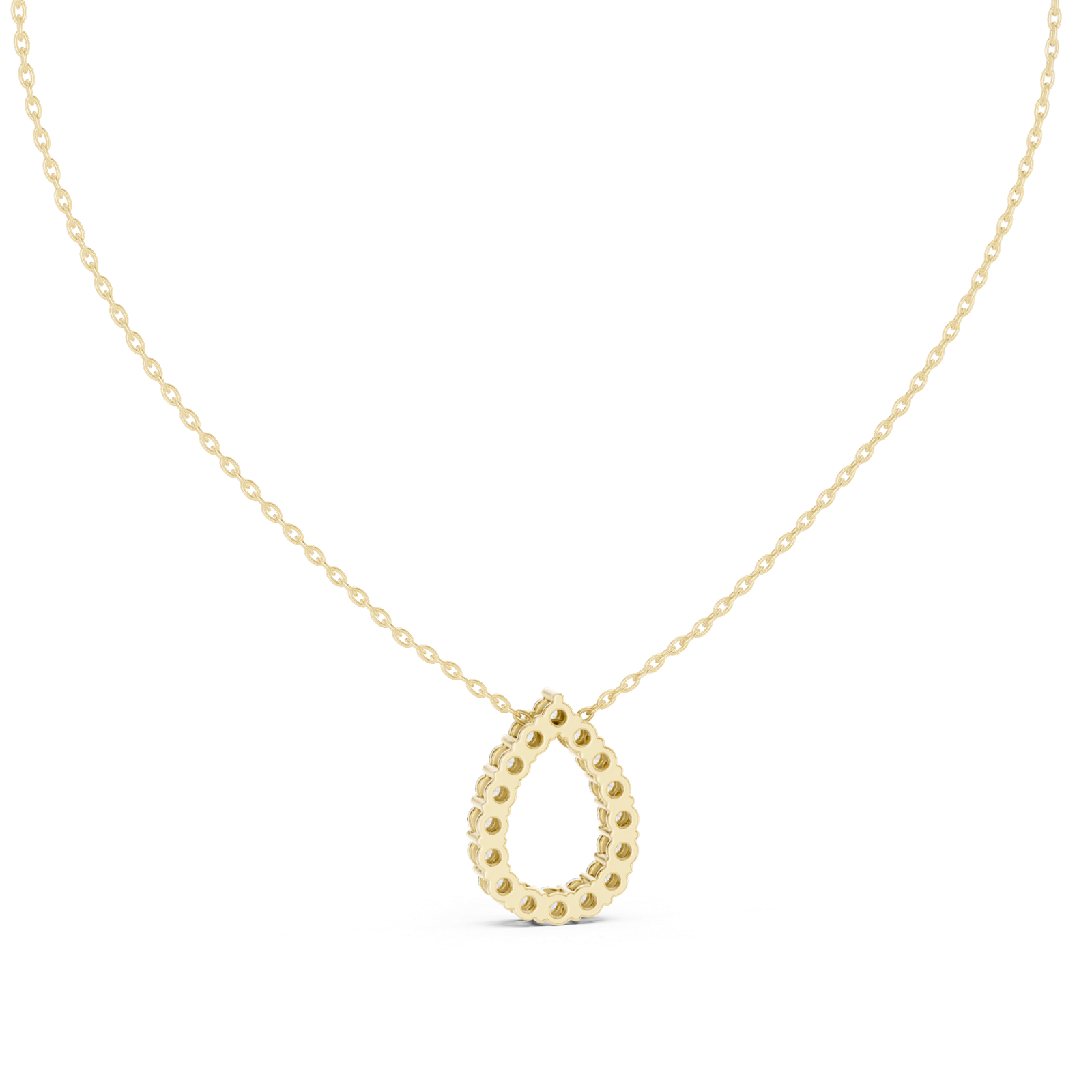 A graceful teardrop pendant adorned with a cluster of round diamonds arranged in a continuous loop. Designed to create a soft flowing silhouette, this piece blends elegance with subtle brilliance for everyday wear.
