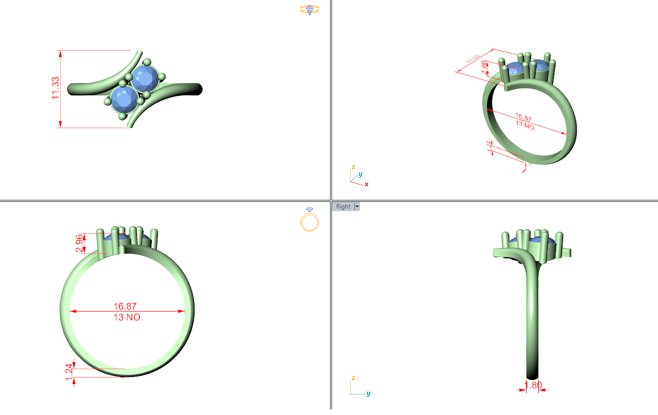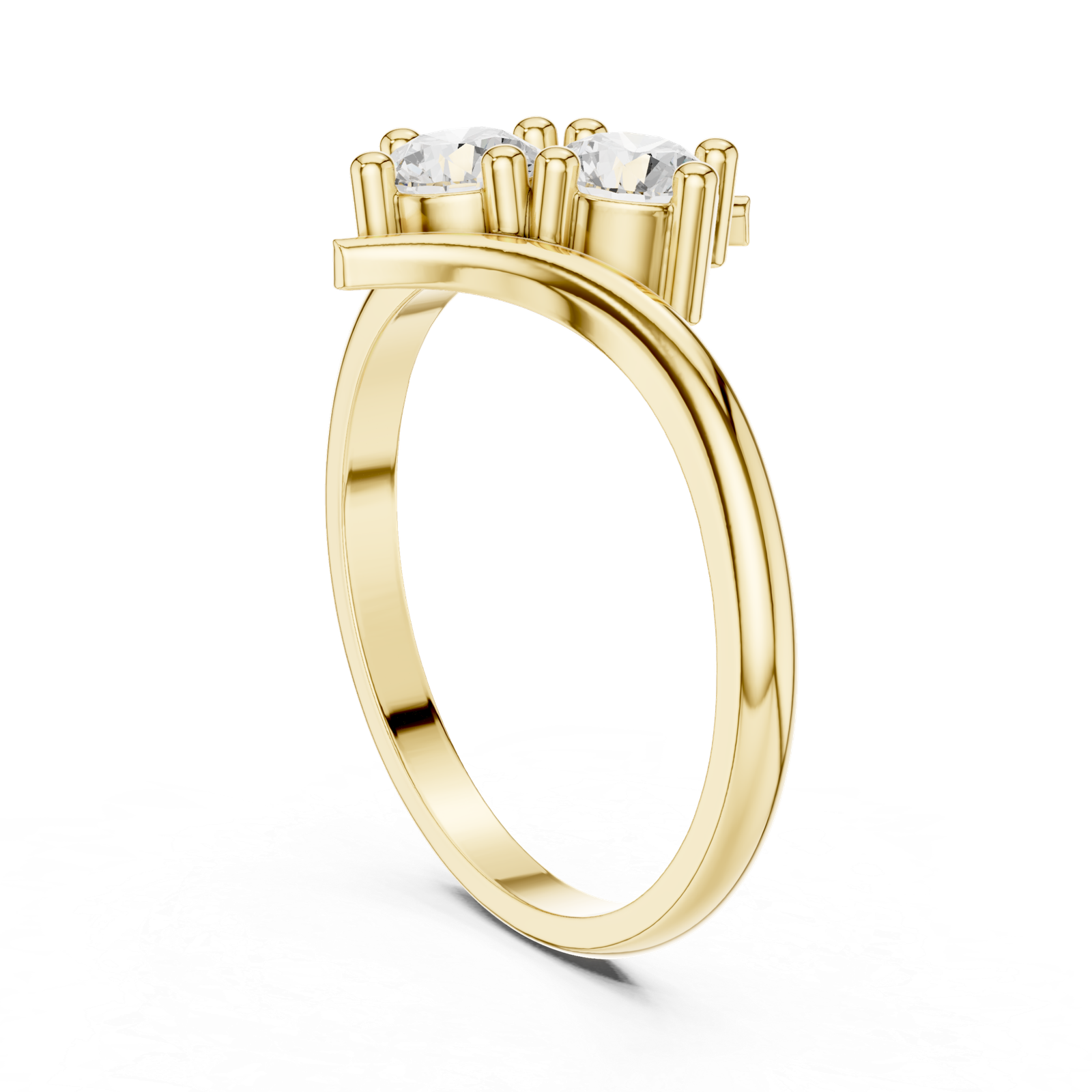 Twin Round Diamond Bypass Ring with Dual Stone Setting